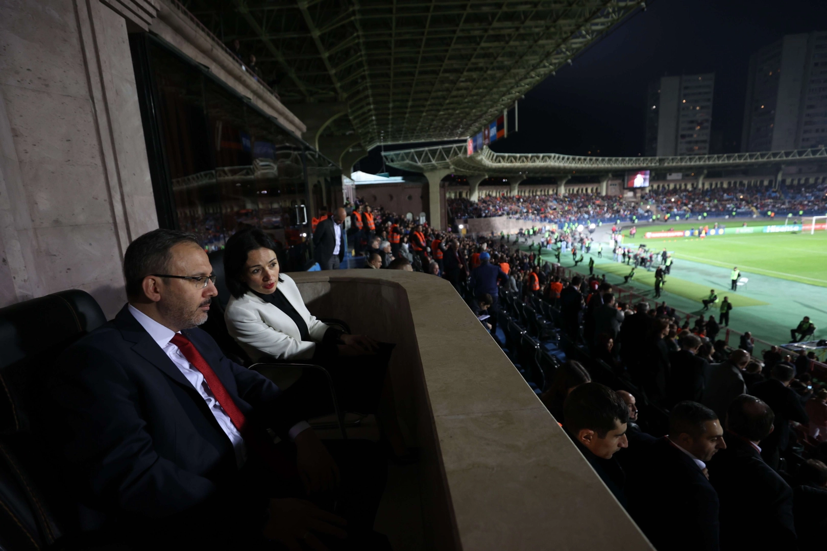 Gençlik ve Spor Bakanı Dr. Mehmet Muharrem Kasapoğlu, Türkiye-Ermenistan arasında oynanan UEFA 2024 Avrupa Şampiyonası (EURO 2024) eleme maçını tribünden takip etti. Gençlik ve Spor Bakanı Dr. Mehmet Muharrem Kasapoğlu, A Milli Takım'ı yalnız bırakmadı. Kasapoğlu, UEFA 2024 Avrupa Şampiyonası'nda oynanan Ermenistan - Türkiye maçında tribündeki yerini alarak mücadeleyi takip etti.