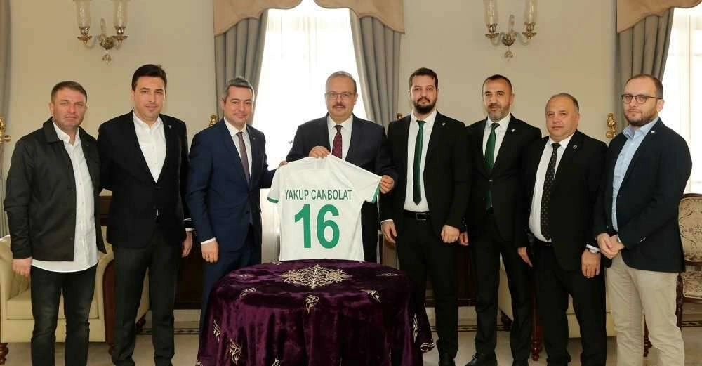 Bursaspor yönetimi, Bursa Valisi Yakup Canbolat’ı ziyaret etti. Başkan Ömer Furkan Banaz ziyaret sonunda Vali Canbolat'a isminin yazılı olduğu beyaz forma hediye etti.