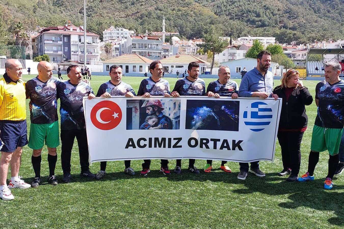 Sahaya çıkarken 'Acımız ortak' yazılı pankartla sahaya çıkan takımlar 60 dakika boyunca top koşturdular. Rodos Belediye Başkan Yardımcısı, 12 Adalar spor temsilcisi ve takım kaptanlarına plaketler takdim edildi. Marmaris Spor Master Kulübünün organize ettiği maç, şehir stadyumunda Rodos ve Marmaris Masterları futbol kulüplerinin 1 dakikalık saygı duruşunun ardından başladı. FİFA Kokartlı eski hakemlerden Mutlu Çelik’in yönettiği dostluk ve moral maçında Marmaris Spor Master takımı 2 -1 sahadan galip ayrıldı. Maçın koordinasyonunu yapan Marmaris Spor Master Kulübü Başkanı Hüseyin Gebeş; "Büyük bir depremle çok büyük bir acı yaşadık. Sonra Yunanistan'da bir tren kazası oldu. Bu yaşananların ardından Rodos'ta ki dostlarımızı Marmaris'e davet ettik. Master dostlarımıza yani 40 yaş üstü eski futbolcularımızla bir dostluk müsabakası yapalım istedik. Marmaris ile Rodos'un turizmden, ailelerine kadar bir çok ortak noktaları var. Bu yaşananların anısına dostluğumuzu bir kez daha kaynaştırmak istedik. Kulüp Başkanı olarak böyle bir organizasyonun içinde bulundum ve buradaki ticaret odası, belediye, kaymakamlık herkes bize destek verdi. Bu destek sonucunda da organizasyonu gerçekleştirdik. Maçı, biz 2- 1 kazandık ama asıl dostluk kazandı. Dostluğumuzu bir kez daha pekiştirmek için biz de oraya gideceğiz. Çünkü acımız ortak. Bunun için hem dostluklarımızı geliştirelim hem acılarımızı paylaşalım diye bu organizasyonu yaptık" dedi. "Acılarımıza ortak olduk" FIFA Kokartlı eski hakemlerden Mutlu Çelik ise maçı yönetme daveti geldiğini memnuniyetle karşıladığını belirterek, "Yaşadığımız deprem ve tren kazası felaketlerinin ardından iki komşu ülke ve şehir olarak ortak bir moral maçı yapmaya karar vermişler. Çok duygulandığım ama bir o kadar da sevdiğim bir maç oldu. Acılarımıza ortak olduk, dostluğumuzu pekiştirdik. Eski takım arkadaşlarım ile görüşüp, yeşil sahada böyle anlamlı bir maç yönetmek güzel bir duygu oldu" şeklinde konuştu. "Sporun dili evrenseldir" Rodos Masterlar Futbol Kulübüne destek olmak için gelen Rodos Belediye Başkan Yardımcısı Alexander Colliadis; "Türkiye ve bizim ülkemizde yaşanan felaketlerin, can kayıplarının ardından iki ülkenin de yaşadığı acılar aynı. Bu sebeple Marmaris ve Rodos olarak bir dostluk maçı yapmak istedik. Farklı dilleri konuşsak da sporun dili evrenseldir, acımızın ortak olduğu gibi" diyerek Marmaris’te bulunmaktan mutlu olduğunu ve yakın bir zamanda sonraki maçın Rodos’ta yapılacağını belirtti. Muğla Valiliği'nde görevli Halil İbrahim Adem ise, "Ülkemizde ki depremler ve Yunanistan'daki tren kazasıyla ilgili yaşanan acıların ardından dostlarımız buraya davet ettik. Biz de onları hem burada ağırladık hem de bir dostluk maçı yaptık. Onlar da ülkemize yardımcı oldular, biz de onlara yardımcı olduk. Bu konuda misafirlerimizi en iyi ağırladığımız ve dostluk maçı yaptığımıza Marmaris’teki tüm arkadaşlarım ve misafirler adına çok teşekkür ediyoruz. Güzel bir maç oldu. Umarım daha dostluğumuz Yunanistan ile pekişir ve sık sık böyle turnuvalar düzenleriz. Başkan yardımcısı da bizi Rodos'a davet etti, en kısa zamanda gideceğiz" dedi. Marmaris - Rodos arası feribot sabah seferi ile Rodos’tan gelen 40 yaş ve üstü futbolcular ise anlamlı organizasyonun ardından akşam seferi ile geri dönecekler.