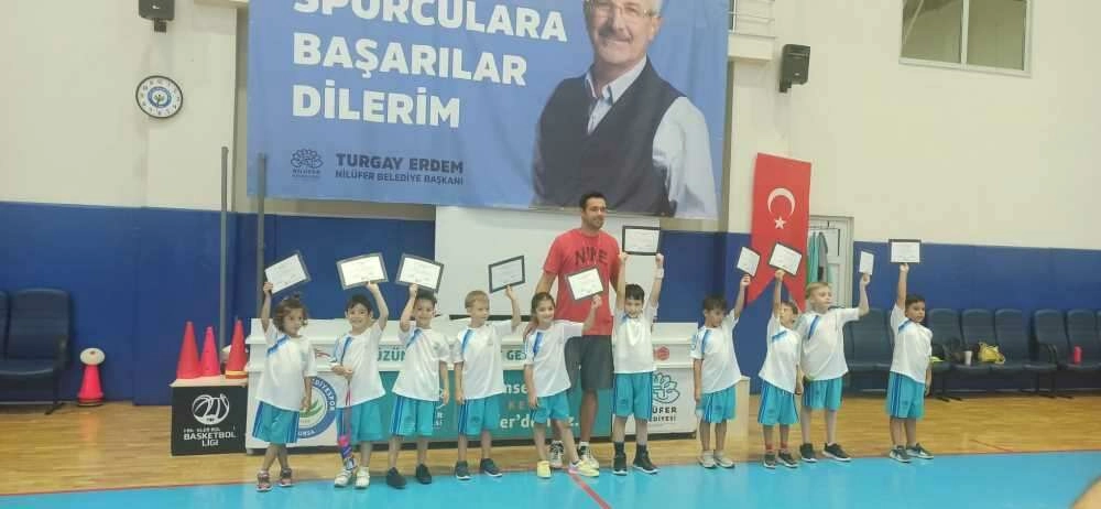 Okulların tatile girmesiyle birlikte öğrencilerin sağlıklı vakit geçirebilmeleri için başlatılan yaz spor okulunun birçok dalında 2'nci dönem eğitimleri tamamlandı. Basketboldan jimnastiğe yüzmeden voleybola kadar bir çok dalda eğitim gören öğrenciler yaz tatillerini spor yaparak geçirdi. Nilüfer ilçesi Yüzüncü Yıl Spor ve Gençlik Merkezi'nde profesyonel koç eşliğinde verilen basketbol eğitimini başarı ile tamamlayan Nilüfer'in minik sporcuları da sertifikalarını aldı. Sertifika alan minik sporcuların sevinci görülmeye değerdi. Sertifika almaya hak kazanan öğrenciler koçları ile birlikte fotoğraf çektirdi.