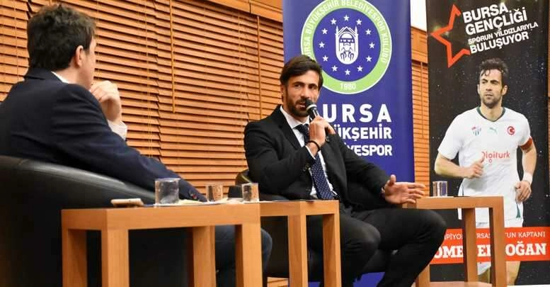 Bursa Büyükşehir Belediyesi Gençlik ve Spor Hizmetleri Şube Müdürlüğü’nce düzenlenen “Bursa’nın gençleri, sporun yıldızlarıyla buluşuyor” faaliyeti Bursaspor’un unutulmaz futbolcularından Ömer Erdoğan’ı gençlerle buluşturdu. Merinos Kongre ve Kültür Merkezi’nde yapılan ve genç yaştaki sporcuların büyük ilgi gösterdiği faaliyette Şampiyon Kaptan gençlerle tecrübelerini paylaştı.