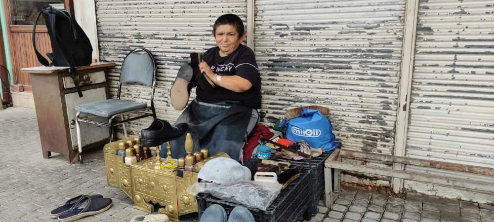 Bursa'da bir metre 15 santim boyundaki ayakkabı boyacısı 49 yıldır hiç ara vermeden çalışıyor.
