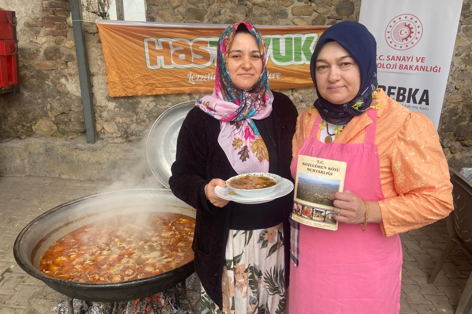 Bursa'nın Kestel ilçesine bağlı tarihi Kozluören köyünde kadınların bir günlüğüne yönetimi devraldığı her 8 Mart Kadınlar Günü'nde pişirip köy meydanında dağıttıkları Selçuklu mutfağının geleneksel iki yemeği çullama ve Dede çorbası, coğrafi işaret almak için Yıldırım Belediyesi, Kestel Belediyesi, il-ilçe gıda tarım müdürlüklerinin yetkilileri, BEBKA ve HasTavuk temsilcilerinin nezaretinde, pişirilerek resmi kayıt altına alındı. Kozluören Kadınları Tarımsal Kalkınma Kooperatifi “Tarladan Sofraya” projesi BEBKA Teknik Destek Hibe Programı kapsamında Büyük Selçuklu İmparatorluğu'ndan kalma köyün 900 yıllık geleneksel yemeği çullama ve dede çorbası için coğrafi işaret yoluna çıktı. Her sene köyün yönetimini 1 günlüğüne devraldıkları 8 Mart Dünya Kadınlar Günü'nde geleneksel iki yemeği pişirip dağıtan köylü kadınlar, bu yıl da aynı organizasyonu gerçekleştirdi. Ancak bu yılki yapılan organizasyona coğrafi işaret alma yolunda rapor hazırlayacak olan temsilciler de katıldı. HasTavuk firmasının sponsor olduğu tavuklar saatler öncesinden köy meydanında yakılan ateşler üzerine konan büyük tencerelerde kaynatıldı. Bir araya gelen köylü kadınlar el birliği ile açtıkları yufkaları kesip baklava dilimi gibi tepsilere dizdi. Tepsideki yufkalar kazanlarda pişen tavuklar ile karıştırılınca ortaya nefis lezzetler çıktı. Selçuklu döneminde savaşa giden askerlere güç kuvvet versin diye geride kalan kadınlar tarafından yapılan ve savaş meydanına gönderilen Dede çorbası yüz yıllar sonra da aynı köyde bir kez daha yapıldı. İçerisine tavuk eti, nohut ve yufka koyulup kaynatılan üzerine nane, kekik ve kırmızı biberli tereyağı eritilerek harmanlanan çorba coğrafi işaret için gelen uzmanlardan da tam not aldı. Rivayete göre Büyük Selçuklu İmparatorluğu zamanında Bizans tekfurlarına karşı mücadele etmek için Horasan bölgesinden Bursa yakınlarına gelen 20 (Abdal) gönül erbabından biri ve aynı zamanda köyün de kurucusu olan Abdal Mehmed Dede, köyün erkeklerini toplayıp savaşa götürünce, köyde kalan hanımı Gül Hatun ve beraberindeki diğer kadınlar da 'Dede çorbası' olarak bilinen yemeği pişirip hem köyde dağıtır hem de askerlere güç kuvvet versin diye savaş meydanına gönderir. Savaştan zaferle dönen askerler dinlenirken Abdal Mehmed Dede'nin talimatıyla kadınlar da yönetimi ele alır. Bu arada köyde savaş sonrası pişirilen çullama yemeği de savaştan dönen askerlere dağıtılır. 900 yıllık yemek geleneği yüz yıllar boyunca süregelip günümüze kadar ulaşır. Kozluörenli kadınlar her yıl 8 Mart'ta yaptıkları yemekle Abdal Mehmed Dede'yi hayırla yad edip, köyün yönetimini de 1 günlüğüne devralır. Aynı yemekler evlatlarını askere gönderirken adak adayan aileler tarafından evlatları askerden dönünce de yapılıp tüm köye dağıtılır. 900 yıllık geleneksel yemeklerin yapımını halen köylerinde devam ettirdiklerini belirten Kozluören Kadınları Tarımsal Kalkınma Kooperatifi Başkanı Ruhsel Demirtaş, "Coğrafi işaret için başvurduk. Sağolsun danışman hocalarımız, BEBKA ve HasTavuk bize destek verdiler. İnşallah iki geleneksel yemeğimiz için de coğrafi işareti alacağız. Kararlıyız" dedi. Pişen yemekleri test eden uzman ekibinden uluslararası araştırmacı öğretim görevlisi Mesut Kaplan "Bölgedeki ürünlerin hem hijyen hem de standartları için proje dahilinde yola çıktık. Bu ürünlerimizin bir kısmında coğrafi tescil yapmayı planlıyoruz. Çorba süper olmuş çok beğendim şu anda böyle bir tescil yok coğrafi işareti alır diye düşünüyorum" dedi. Kozluören Kadınları Tarımsal Kalkınma Kooperatifi Başkan Yardımcısı Fatma Özdaş da kadının güçlü olduğunu göstermek adına her yıl bu yemekleri yaptıklarını ifade etti. Özdaş, 900 yıl önce Gül Hatun tarafından yapılan geleneksel yemekler için coğrafi işaret aldıkları takdirde tüm dünyaya tanıtacaklarını söyledi. Kozluören Köyü Erkek Kalkınma Kooperatifi Başkanı Hüseyin Özdaş ise geçmişten bugüne çorbanın hikayesini anlatıp her sene aynı yemeklerin yapılarak Abdal Mehmet Dede'nin kabri başında dualarla yad edildiğini anlattı. O zamandan bu zamana ramazan aylarında, adaklarda, asker uğurlamalarında ve düğünlerde yapılan çullama yemeğinin coğrafi işaret yolculuğuna sponsor HasTavuk firması ile çıktığını belirten Özdaş, ilerleyen süreçte dede çorbası, yumurta dolması ve Gül Hatun şerbetinin de Kozluören köyü kadınlarınca resmileştirileceğini dile getirdi.