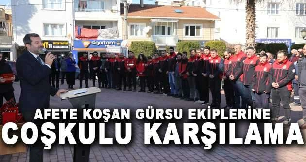 Deprem bölgesindeki arama kurtarma ve yardım faaliyetlerinde görev alan Gürsu Belediyesi Arama Kurtarma Ekibi (Gürak) ve Gürsu Belediyesi Yerel Destek Ekibi, düzenlenen törende tebriklerle karşılandı.