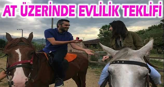 Bursa'nın İnegöl ilçesinde yaşayan genç, 1 yıldır beraber olduğu sevgilisine at üzerinde sürpriz evlilik teklifinde bulundu.