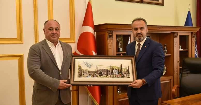 Azeri işadamları, Bursa’daki temaslar çerçevesinde Büyükşehir Belediye Başkanı Alinur Aktaş’ı ziyaret etti. tarihî belediye binasında yapılan ziyarete, TAİB Başkanı Mehdi Nağıyev ile yönetim kurulu üyeleri katıldı. Büyükşehir Belediye Başkanı Alinur Aktaş, Azeri işadamlarını Bursa’da ağırlamaktan duyduğu memnuniyeti dile getirdi. İki devlet tek millet olarak ifade edilen Türk Azeri kardeşliğinin tarihi geçmişe dayanan sağlam bir alt yapısının bulunduğunu kaydeden Başkan Aktaş, “Socar Grubu’nun Bursagaz’la anlaşması işi daha anlamlı hale getirdi” diye konuştu.