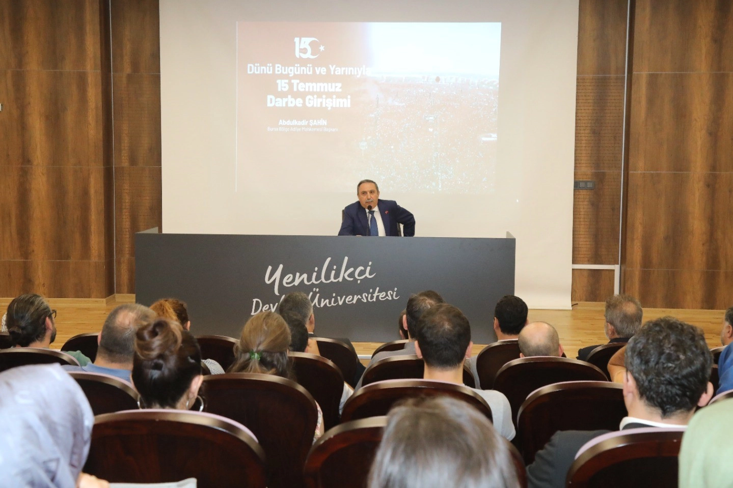 'Dünü, Bugünü ve Yarınıyla 15 Temmuz Darbe Girişimi' başlıklı konferansta konuşan Bursa Bölge Adliye Mahkemesi Başkanı Abdülkadir Şahin, “Darbe girişimi gecesinde ilk gözaltının yapıldığı Bursa’da, girişimin tüm detayları, ele geçirilen listelerle deşifre edildi. Yargı, müthiş bir operasyonla darbecilerin gücünü kırdı” dedi. Bursa Teknik Üniversitesine (BTÜ) 15 Temmuz Demokrasi ve Milli Birlik Günü dolayısıyla konuk olan Bursa Bölge Adliye Mahkemesi Başkanı Abdülkadir Şahin, 'Dünü, Bugünü ve Yarınıyla 15 Temmuz Darbe Girişimi' başlıklı konuşmasıyla, Fethullahçı Terör Örgütünün (FETÖ) kuruluşu, büyümesi, darbe girişimi öncesi ve sonrası yaşananları anlattı. Mimar Sinan Yerleşkesi Ali Sümen Salon’da gerçekleşen konferansa, BTÜ Rektörü Prof. Dr. Naci Çağlar, Yıldırım Kaymakamı Metin Esen, Rektör Yardımcıları Prof. Dr. Sinan Uyanık ve Prof. Dr. Barış Tamer Tonguç, Genel Sekreter Selim Uzun, akademik ve idari personel katıldı. FETÖ’nün 1970’li yıllarda farklı bir grup bünyesinde faaliyet gösterdikten sonra kendi bağımsızlığını ilan ederek 1980’li yıllarda büyüdüğünü anlatan Şahin, örgütün Mavi Marmara ve Deniz Feneri davalarıyla hükümetle karşı karşıya geldiğini söyledi. Gezi Olayları ve 17-25 Aralık operasyonlarının da FETÖ terör örgütü tarafından yapıldığını kaydeden Abdülkadir Şahin, tüm bunların engellenmesiyle örgütün, 15 Temmuz hain darbe girişimini gerçekleştirdiğini söyledi. Bugüne kadarki en organize ve planlanmış darbe girişiminin 15 Temmuz olduğunu aktaran Abdülkadir Şahin, “15 Temmuz, merkezinde hava kuvvetlerinin olduğu bir darbe girişimidir. FETÖ bu girişime, deşifre olmaması için tüm elemanlarını dâhil etmedi. Ancak darbe girişimi yapacakları deşifre olduğu için gece saat 3’te planlanan girişim, gelen talimatla saat 20’ye alındı” dedi. Darbecilere İlk Gözaltı Bursa’dan 15 Temmuz gecesi Bursa’da yaşananları anlatan Abdülkadir Şahin, kendisinin dönemin Bursa Cumhuriyet Başsavcısı olduğunu belirtti. O gece, darbe girişiminin olduğu bilgisini alınmasının ardından Yurdakul Akkuş’un sıkıyönetim komutanı olduğunu ve Osmangazi İlçe Jandarma Komutanlığına gittiğini öğrendiğini aktaran Şahin, 19 yıllık Cumhuriyet Başsavcısı olarak aldığı inisiyatifle saat 23.50’de Yurdakul Akkuş için gözaltı kararı verdiğini ifade etti. Emniyetten 8 kişilik polis ekibinin, Osmangazi İlçe Jandarma Komutanlığına giderek Akkuş’u gözaltına aldığını ifade eden Şahin, böylelikle darbe girişimi gecesinin ilk gözaltı işleminin Bursa’da yapıldığını kaydetti. Gözaltı işleminin gerçekleştirildiği esnada kendisine, Emniyet’ten Akkuş’un çantasında belgeler bulunduğuna dair haber geldiğini anlatan Şahin, “Akkuş’un çantasında, 23 sayfalık darbe harekât planı ve tüm sıkıyönetim komutanlarının isimleri bulunuyordu. Bir başka listede ise sıkıyönetim mahkemelerinde görevlendirilecek hâkim ve savcı kökenli 423 subayın ismi yer alıyordu. Üçüncü listede ise genelkurmaya bağlı 450 kişilik atama listesi bulunuyordu. Burada kimlerin, hangi mevkilerde yer alacağı belirlenmişti. Bu hayati listeyi ilgili yerlere gönderdik. Devlet bu şekilde topyekûn olarak, Genelkurmayda kimler bu darbenin içinde ya da dışında öğrenmiş oldu” ifadelerini kullandı. Darbe girişiminin başlamasına rağmen; kamu otoritesinin, emniyetin, yargının çalışamaya devam etmesinin vatandaşı cesaretlendirdiğini vurgulayan Abdülkadir Şahin, “Darbeler, anayasa ve Türk Ceza Kanunu’na göre ağır suçtur ancak darbeyi yine meşrulaştıran yargıdır. 1960 ve 1980 darbeleri de yargıyla meşrulaştırılmıştı. Ama 15 Temmuz’da yargı, darbeye karşı pozisyon aldı, halkla bir araya geldi. İşte bu aşamada, Cumhurbaşkanı Recep Tayyip Erdoğan’ın çağrısı ile vatandaş da devletin tüm organları da darbe girişimini bertaraf etmek için elinden geleni yaptı. Halk sokakları doldurdu, askeri birliklerin önüne kepçeler, kamyonlar koyarak çıkışları engelledi. İkinci bir darbe durumuna karşı yine halk, gece gündüz 45 gün boyunca sokakta nöbetini sürdürdü. Yargı bu süreçte müthiş bir operasyonla, darbe yapanların gücünü kırmaya çalıştı. Darbe, cuma akşamı yapıldı, pazar günü 2 bin 850 hâkim ve cumhuriyet savcısı açığa alındı. Günümüzde FETÖ hala bitmedi ama deşifre oldukları için bir daha operasyon çekemezler” dedi. "Devlet her zaman 18 yaşındadır" ifadesini kullanan Abdülkadir Şahin, sözlerine şunları da ekledi: “Türkiye Cumhuriyeti bir çadır devleti değildir, köklü medeniyeti ve tarihi olan bir devlettir. Bu nedenle herkes müsterih olsun. Bu tür yapılara karşı devletin tüm organları tedbirli. Düşman her zaman düşmanlığını yapar. Önemli olan ona karşı nasıl durdurduğumuzdur.”