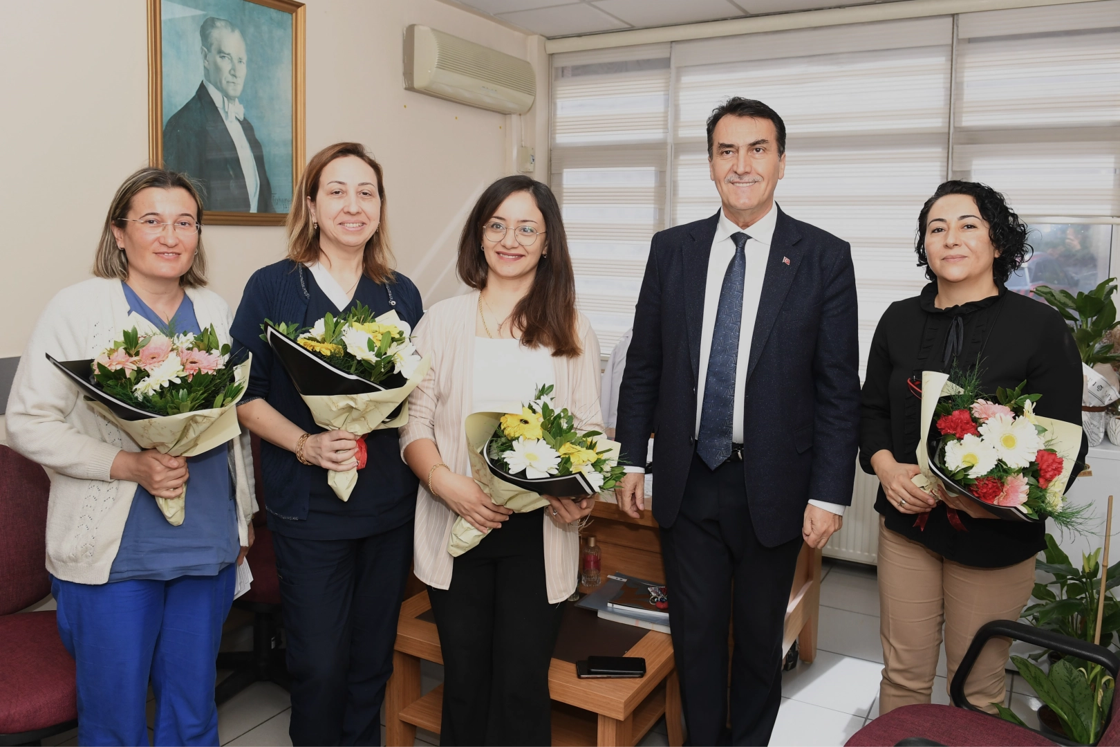 Görev yaptığı 15 yıl boyunca Osmangazi ilçesinde 7 ‘den 70’e herkesin takdirini kazanan Osmangazi Belediye Başkanı ve Cumhur İttifakı Başkan Adayı Mustafa Dündar, 14 Mart Tıp Bayramı’nda sağlık çalışanlarını unutmadı. Çekirge Devlet Hastanesini ziyaret eden Başkan Dündar, burada görev yapan doktor ve sağlık çalışanlarını görev yaptıkları birimlerde BaşhekimOp. Dr. Kemal Kaya ile birlikte ziyaret edip çiçek vererek tıp bayramlarını kutladı. Başkan Dündar, hastaneye yaptığı ziyarette tedavi olmak için gelen hastalarında hatırını sormayı ihmal etmedi. Hastanelerine yaptığı ziyaretten dolayı Osmangazi Belediye Başkanı Mustafa Dündar’a teşekkür ettiklerini ifade eden Çekirge Devlet Hastanesi Başhekimi Op. Dr. Kemal Kaya, “Başkanımız 14 Mart Tıp Bayramını kutlamak üzere hastanemize geldi. Bugün bizim için önemli bir gün ben kendilerine çok teşekkür ediyorum. Bizi unutmayıp buraya kadar geldiği için çok mutlu olduk” dedi. Doktorların toplum için çok değerli olduğunu belirten Osmangazi Belediye Başkanı Mustafa Dündar, “14 Mart Tıp Bayramı’nda Bursa’mızın en eski hastanesi olan Çekirge Devlet Hastanesi’nde görev yapan sağlık çalışanlarını ziyaret ederek bayramlarını kutladık. Doktorluk önemli bir meslek, en küçük rahatsızlığımızda onlara koşarız. En zor günlerimizde sağlık çalışanlarımız yanımızda oluyor. Bizde yılda bir günde olsa onları ziyaret ederek hatırlarını sorup kolaylıklar dilemek istedik. Allah sağlık çalışanlarımıza güç kuvvet versin, tüm toplum olarak sağlıklı günler diliyoruz” diye konuştu. Çekirge Devlet Hastanesi sağlık çalışanları da kendilerini ziyaret edip, çiçek veren Başkan Dündar’a teşekkür etti.