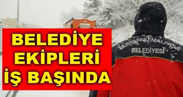 110'u kırsal 131 mahallesiyle Bursa'nın en büyük yüz ölçümüne sahip ilçesi Mustafakemalpaşa'da beklenen kar yağışının başlamasıyla birlikte ilk andan itibaren üst düzey önlemler alınarak, özellikle ana arterlerin açık tutulması sağlandı. Yüksek kesimlerin ardından etkili olan kar yağışı ve don olaylarına karşı yoğun mesai harcayan Mustafakemalpaşa Belediyesi Fen İşleri Müdürlüğü ekipleri, yollarda meydana gelen buzlanmalar sonucu sürücülerin zorluk yaşamaması için önlem aldı. Vardiyalı olarak çalışan 35 kişilik ekip, kar yağışının yoğunlaştığı saatlerden, sabahın ilk ışıklarına kadar özellikle ana arterlerin açık tutulması için büyük çaba harcadı. 20 ton kumlu tuz kullanılan çalışmalarda Balıkesir Caddesi başta olmak üzere, Devlet hastanesi yolu, Bursa Caddesi, 14 Eylül Bulvarı, Kirmasti Köprüsü ve Lalaşahin Paşa Köprüsü ile Karşıyaka’daki ana arterler üzerinde tuzlama yapıldı. Gece ve gün boyu kesintisiz devam eden çalışmalarla ilçede kardan kapanan 15 mahallenin yolu Bursa Büyükşehir Belediyesinin desteğiyle ulaşıma açıldı. Mustafakemalpaşa Belediye Başkanı Mehmet Kanar, "1 kar küreme tuzlama kamyonu, 2 tam donanımlı grayder, 2'si kar küremeli 6 kepçe, 1 yükleme aracı ve 15 acil destek aracı ile tüm imkanlarımızı seferber ettik. Vatandaşlarımızdan gelen şikâyetler anında giderildi. Meteorolojinin uyarıları doğrultusunda gerekli tüm tedbirlerimizi aldık. Yolların açık tutulması ve vatandaşlarımızın rahat bir kış geçirmesi amacıyla çalışmalarımızı aralıksız sürdürmeye devam edeceğiz" dedi.