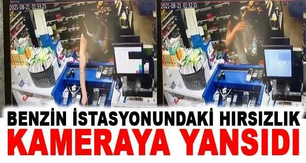 Bursa'da bir benzin istasyonunun market kısmında meydana gelen cep telefonu ve gıda hırsızlığı kameraya yansıdı.