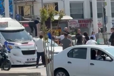 Yaşanan kavga anı ise bir vatandaşın cep telefonu kamerasına saniye saniye yansıdı.
