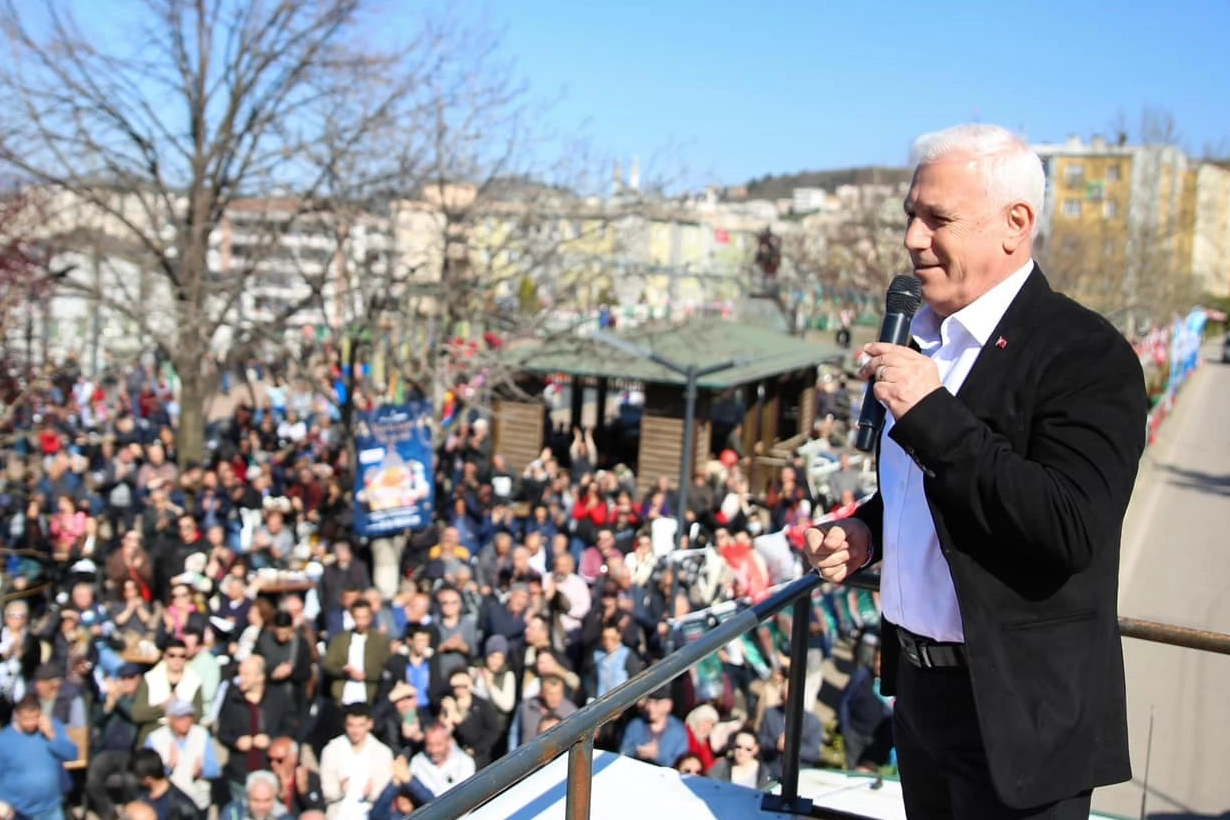 Her gittikleri yerde değişim talebi olduğunu dile getiren Bozbey, “Gittiğimiz her yerde o kadar büyük bir değişim talebi var ki. Bursa’nın geleceğine damga vuracak olan çocuklarımızın, gençlerimizin, kadınların, engellilerin, her yaştan vatandaşın gülümsemesi için sandıkta gerekeni yapacak olan tüm Bursalılara selam olsun” ifadelerini kullandı.