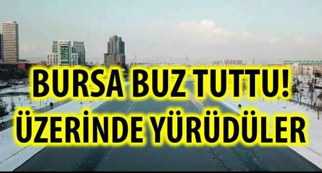 Akarsuyun buz tutan kısımları havadan görüntülenirken, bazı vatandaşlar buz tutan noktalarda yürüdü. Bursa'da hava sıcaklığı gece sıfırın altında 10 dereceye düştü, Nilüfer Çayı'nın bazı bölümleri buz tuttu. Buz üzerinde yürüyen vatandaşlar, fotoğraflandı. Kar yağışının ardından meteorolojinin don olaylarına karşı uyardığı kentte, dün gece termometreler eksi 10 dereceyi gösterdi. Akıntının az olduğu bölümleri tamamen buzla kaplanan çayda yürüyen vatandaşlar, bol bol fotoğraf çekti. Buz tutan çay havadan drone ile de görüntülendi.
