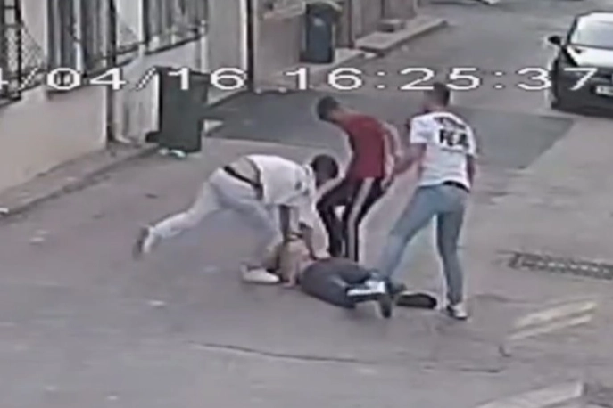 Bursa'da 3 genç, tartıştıkları bir kişiyi acımasızca darp edip, kafasına defalarca tekme attı. Olay, merkez Osmangazi ilçesi Santral Garaj Mahallesi'nde meydana geldi. Edinilen bilgiye göre, henüz bilinmeyen bir sebepten dolayı çıkan tartışma kısa sürede büyüdü. 3 genç, sokak ortasında tek sıkıştırdıkları bir genci tekme, tokat ve yumruklarla dövdü. Bir dakika boyunca genci acımasızca döven ve kafasına defalarca tekme atan 3 şahıs, daha sonra olay yerinden uzaklaştı.