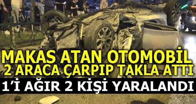 Bursa’da yüksek hızla makas atan sürücü 2 araca çarpıp takla attı. Araçta sıkışan bir kişi ağır olmak üzere 2 kişi yaralandı.
