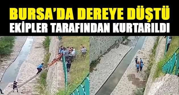 Bursa’da dereye düşen bir kişi itfaiye ekipleri tarafından yapılan kurtarma operasyonuyla düştüğü dereden kurtarıldı.