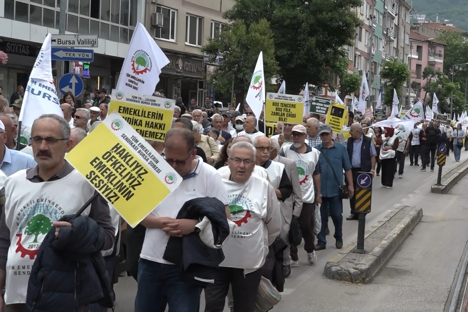 Bursa’da bir araya gelen emekliler, maddi imkanların yetersiz olduğu gerekçesiyle yürüyüş düzenledi. Atatürk Stadyumu önünde toplanan emekliler, Darmstad Caddesi üzerinden yürüyerek kent meydanında toplandı. Emekliler adına konuşan Tüm Emeklilerin Sendikası Başkanı Ensar Torun, "Ülke ekonomisi her yıl belli ölçekte doğal olarak büyüyor. Peki bu büyümeden, yani refah payından emekliler, çalışanlar neden yararlandırılmıyor? Emekliler hem ekonomik mücadelelerini sürdürecekler, hem de bu ülkenin olması gereken laik, demokratik, insan haklarını saygılı ve sosyal bir hukuk devlet olması için mücadele edeceklerdir” diye konuştu. Torun, "Bu maaşlarla yaşanmaz. Bizi görün. Ülkenin birçok bölgesinde taleplerimizi içeren on binlerce imzayı TBMM'ye teslim edeceğiz. Yarın Ankara'da yapılacak emekli mitingine destek vereceğiz. Yeni emeklilik yasası, bilim insanları ile çalışanların ve emekli sendikalarının da katılımıyla sil baştan yeniden yapılmalıdır. Memurlara verilen seyyanen zam bütün emeklilere verilmelidir. Böylelikle en düşük emekli maaşı, en düşük memur maaşına eşitlenecek şekilde kademelendirilmelidir" dedi.