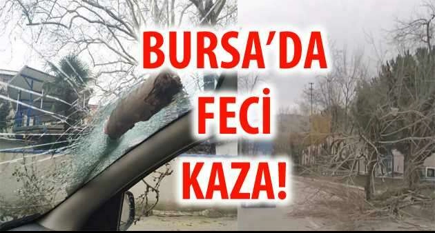 Bursa'da şiddetli lodos şehirde ağaçları devirdi. Yeni Karaman Mahallesi'nde lodosdan devrilen ağaç otomobilin camına ok gibi saplandı.