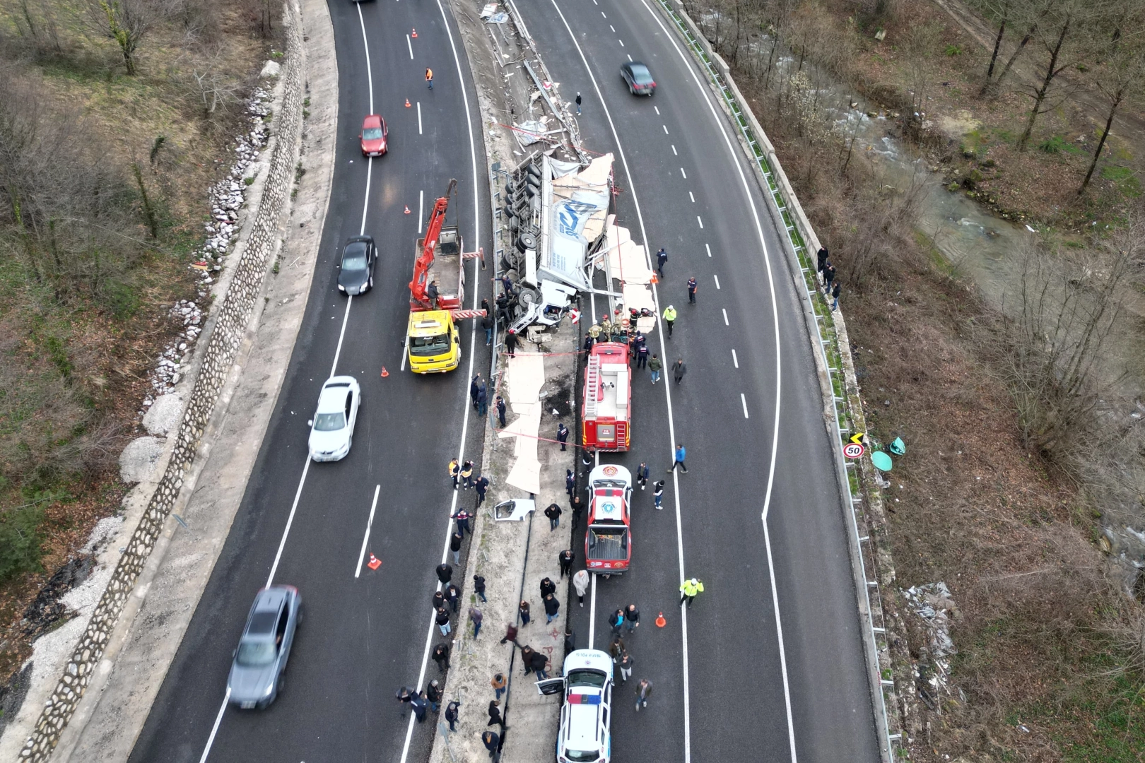 Eskişehir'den yüklediği suntaları İnegöl'e getirmek üzere yola çıkan Ömer Doğan (59) yönetimindeki 16 PK 936 plakalı tır, virajda sürücünün kontrolünden çıkarak refüje devrildi. İhbar üzerine olay yerine çok sayıda polis, jandarma, itfaiye ve sağlık ekibi sevk edildi. Ekipler, sıkışan sürücünün olay yerinde hayatını kaybettiğini belirledi. Doğan’ın cansız bedeni morga kaldırılırken, tır ve yola saçılan suntalar vinç yardımıyla yoldan kaldırıldı. Kazayla ilgili tahkikat başlatıldı.
