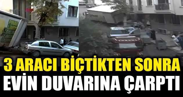 Bursa'da freni patlayan içecek yüklü kamyon 3 aracı biçtikten sonra evin duvarına çarparak durabildi.
