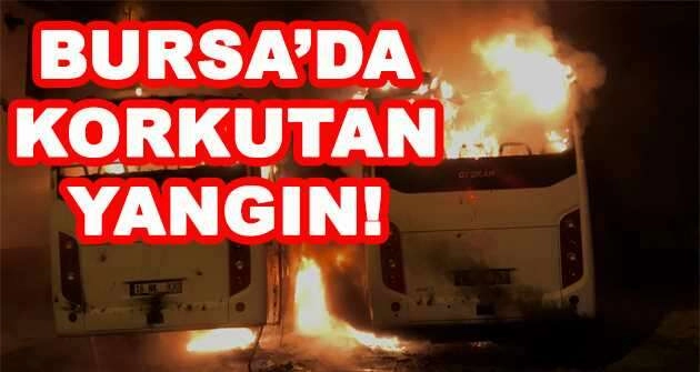 Bursa’da bina önünde park halinde bulunan iki otobüs, alevler içinde kaldı.