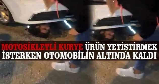 Bursa'da ürün yetiştirmek isteyen motosikletli kurye kontrolden çıkan aracıyla bir otomobilin altına girdi. Sıkışan motosiklet sürücüsünü kurtarmak için zamanla yarış başladı.