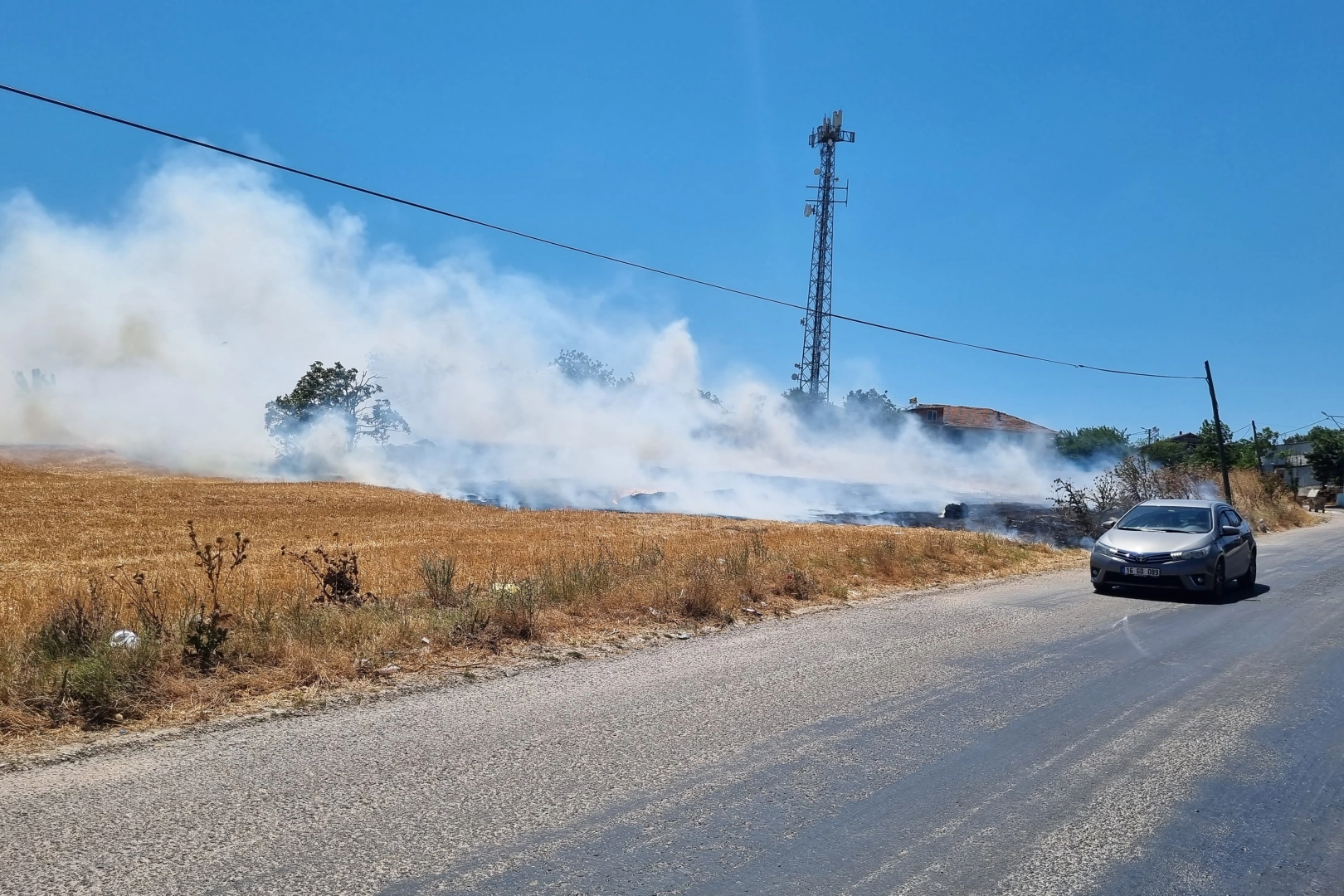 Bursa-İzmir Karayolu kenarındaki otluk alanda başlayan örtü yangını şiddetli rüzgar sebebiyle ilerliyor. Küçükbalıklı köyü girişindeki yangına yoldan geçen sürücüler, bir tavuk firmasının çalışanları ve itfaiye ekipleri birlikte müdahale ediyor. Edinilen bilgiye göre, Nilüfer ilçesine bağlı Küçükbalıklı köyü girişinde otluk alanda başlayan yangın şiddetli rüzgarın etkisiyle bir anda büyüyüp yaklaşık 20 dönümlük alana yayıldı. Bursa-İzmir Karayolu'nda araçlarıyla ilerleyen sürücüler alevleri görünce durup yangına müdahale etti. Çevredeki bir tavuk firmasının çalışanlarının da yardım ettiği ortak çalışmaya itfaiye ekipleri de dahil olunca yangının önü kesildi. Bölgeye Bursa şehir merkezinden de ekiplerin sevk edildiği öğrenildi.
