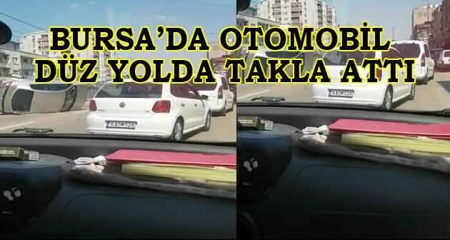 Bursa’da düz yolda istikamet eden sürücü, başka bir otomobilin aniden önüne kırmasıyla kontrolden çıkarak takla attı.