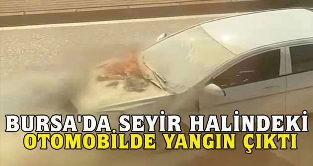 Bursa'da seyir halindeki bir otomobilin motor kısmında yangın çıktı.