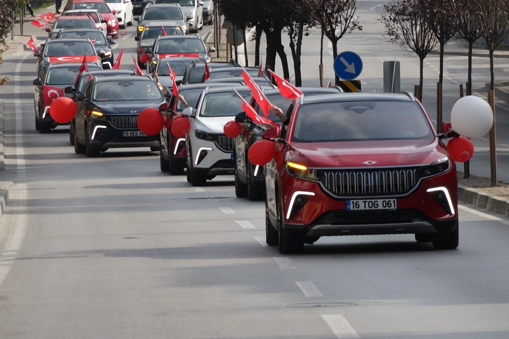 Bursa'da oluşturdukları gruptan haberleşen Togg T10X sahipleri, Cumhuriyet'in 100. yılında yerli ve milli otomobille şehir turu attı. Anadolu, Gemlik, Pamukkale ve Kula renk akıllı cihazlarını kırmızı ve beyaz balonlarla süsleyen sahipleri, kornalar eşliğinde Heykel, Altıparmak, Kükürtlü ve Bursa Büyükşehir Belediyesi Stadyumu turu attı. Stadyumun önünde Togg'larla hilal ve ay oluşturan araç sahipleri, ellerindeki bayraklarla Cumhuriyet'i kutladı.