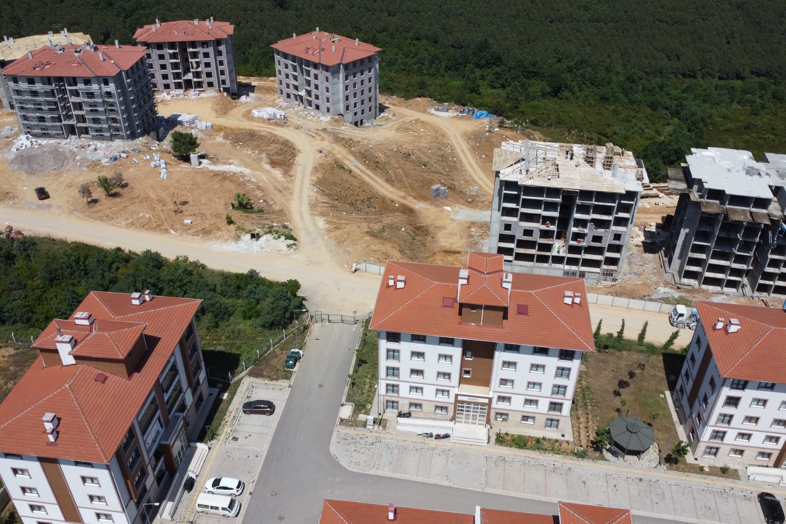 Orhangazi’de Hamzalı Yolu üzerinde inşasına geçen yıl ağustos ayında başlanan TOKİ beşinci etap konutlar yükseliyor. Yüklenici firma Tarafından inşası devam eden 166 konuttan oluşan TOKİ 5.Etap Konut projesi 8 bloktan oluşacak. İnşaat çalışmalarında ise şu ana kadar 6 bloğun kaba inşaatı yükselmeye başladı. Hak sahipleri kura çekiminin daha önce yapıldığı 166 adet konut projesinin inşaat ihalesi ise geçen yıl Temmuz ayında yapılmış, projenin yüklenici firması ise AES Yapı olmuştu. Toplu Konut İdaresi tarafından ihalesi yapılan yeni TOKİ projesinin ihale şartnamesine göre yapım süresi ise 550 gün olarak belirlenmişti. Yüklenici firmanın projeyi 2025 Şubat ayına kadar tamamlaması planlanıyor. Havadan görüntülendi Hamzalı yolu üzerindeki 292 adetten oluşan TOKİ dördüncü etap projesinin yanında inşa edilen 166 konutluk TOKİ projesi havadan görüntülendi. TOKİ dördüncü etap bünyesindeki sosyal donatı alanları ile birlikte beşinci etabın da tamamlanması ile birlikte bölgedeki konut sayısı 458 adete yükselmiş olacak.