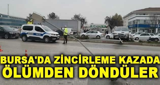 Bursa'nın İnegöl ilçesinde bir minibüs 2 araca çarpıp aydınlatma direğini devirdi. Şans eseri yaralanan olmadı.