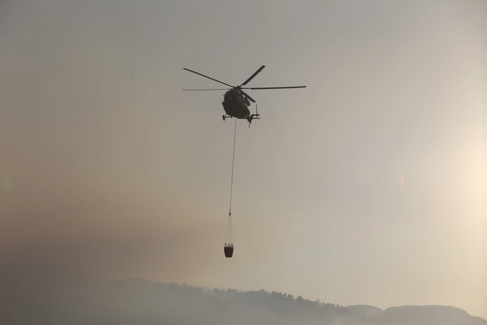 Bursa'nın Büyükorhan ilçesinde ormanlık alanda çıkan yangın günün ilk ışıklarında dron ile havadan görüntülendi. Bin personelin havadan ve karadan müdahalesi sürerken, yangın kısmen kontrol altına alındı. Yangın, 13.45 sıralarında Büyükorhan ilçesi Demirler köyü mevkiinde başladı. Rüzgarın etkisiyle kısa sürede büyüyen alevleri gören vatandaşlar durumu 112 Acil Çağrı Merkezi'ne bildirdi. İhbar üzerine yangın yerine arazözler ve itfaiye ekipleri sevk edildi. Sabahın ilk ışıklarıyla beraber helikopter ile müdahale edilirken, karadan 210 araç ve bin personel ile müdahale edilmeye devam ediliyor. 250 hektar alana yayılan yangına ekiplerin müdahalesi sürüyor. Yangında herhangi bir can kaybı ve yaralanma meydana gelmediği öğrenildi.