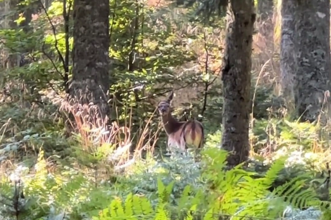 Doğa fotoğrafçısı Samet Asutay, arkadaşı ile İnegöl ormanlarında doğa yürüyüşü yaparken, nadir görülen ve nesli tükenmekte olan kızıl geyiği kamerasıyla görüntüledi.