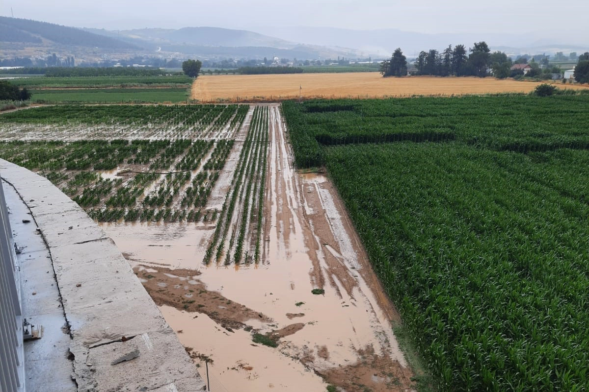 Bursa'da sağanak yağış ovadaki tarım alanlarında binlerce dönüm ekili alanı vurdu. Dolu yağışı da meyve ağaçlarına zarar verdi Valiliğin sabah yaptığı uyarının ardından saat 14.30 sularında sağanak yağış ve dolu köylerde de hayatı felç etti. Özellikle Yenişehir, Gürsu ve Kestel Ovası'nda binlerce dönüm ekili alan sel sularından etkilendi. Yenişehir'in Koyunhisar ve Marmaracık köylerinde ekili alanlar sağanak yağıştan büyük ölçüde zarar gördü. Mısır, ayçiçeği ,fasulye ve biber gibi binlerce dönüm arazideki ekili ürünler sular altında kaldı. Gürsu ve Kestel ovasında da meyve ağaçlarının bir kısmının dolundan etkilendiği kaydedildi. Zarar tespitinin yağışların sona ermesinin ardından yapılacağı öğrenildi.