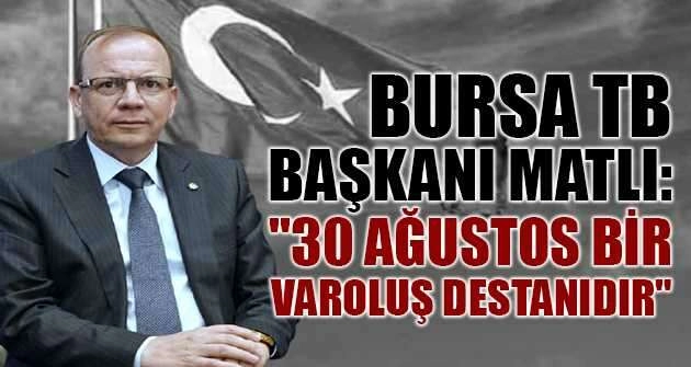 Bursa TB Yönetim Kurulu Başkanı ve TOBB Yönetim Kurulu Üyesi Özer Matlı, 30 Ağustos Zafer Bayramı dolayısıyla yayımladığı mesajında, 30 Ağustos’ta kazanılan büyük zaferin Türk milletinin bağımsızlığını tüm dünyaya ilan ettiği gurur günü olduğunu söyledi.