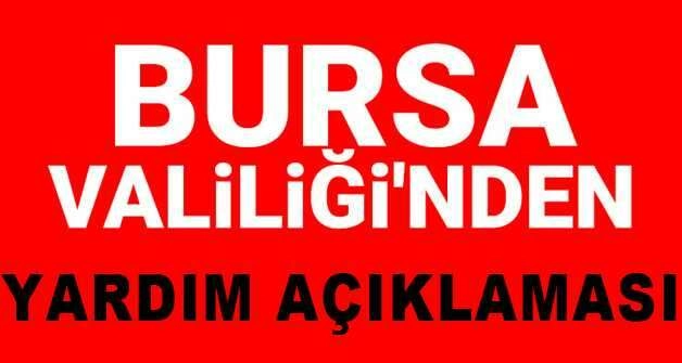Bursa Valiliği’nden yapılan açıklamada şu ifadelere yer verildi; “6 Şubat 2023 tarihinde Kahramanmaraş Pazarcık merkezli meydana gelen deprem sonrası genel hayatı olumsuz etkileyen şartların giderilmesi ve afetzede vatandaşlarımızın acil ihtiyaçlarının karşılanması amacıyla yapılacak tüm yardımlar Bursa İl AFAD Müdürlüğü koordinesinde gerçekleştirilecektir. İrtibat Numarası: 0224 216 00 02-10 hat Kamuoyuna saygıyla duyurulur.”