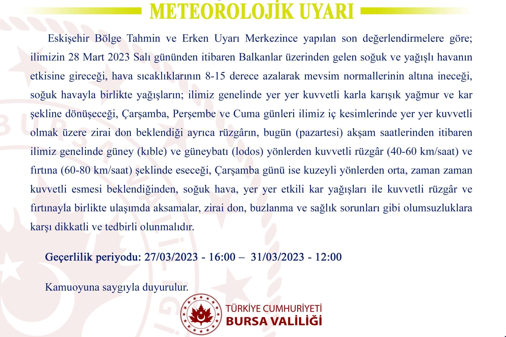 27/03/2023 - 31/03/2023 tarihleri arasında dikkat.