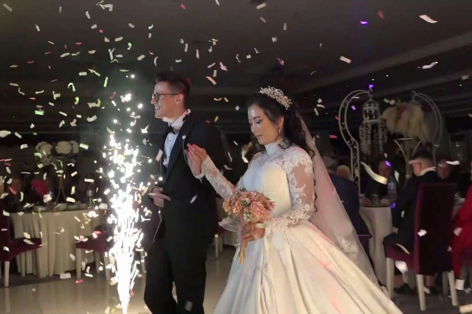 5 yıllık hasret Bursa'da Türk usulü düğünle mutlu şekilde biterken, Filipinli genç düğünde gönlünce eğlendi. Bursa'da bir firmada kendi işini kuran Kemal Ayaz (35) internet üzerinden Rudylene Louh ile 2018 yılında sohbet sitesinde tanıştı. İkili arasında ilişki her geçen gün ilerlerken Rudylene Louh ile Kemal Ayaz arasında aşk başladı. Yıllar geçse de çift birbirinden vazgeçmezken 12 bin kilometre mesafe aşka engel olmadı ve Rudylene Louh ile Kemal Ayaz Bursa'dakii Türk usulü törenle dünya evine girdi. “Bilet parası topladım” O dönemler garson olarak çalıştığı söyleyen Ayaz, “Çalıştığım dönemler durumum yoktu. Uçak bileti için günde 1 lira kumbarama para attım. Ama o şekilde bilet fiyatını toplamam imkansız. Çok pahalı. Bir gün dua ettim. "Allah'ım sen yardımcı ol" derken babamın işleri açıldı. Ben babamın yanında çalışmaya başladım. İlişkimizi ailesi biliyordu. Bir sene sonra ben annemi de alarak 12 bin kilometre uzaklıktaki Filipinlere kız isteme gittik. Ailesi beni tanıdı. Kültürümüzü tanıttık. Ailesi ile aramızda güçlü sinerji oluştu ve 5- 6 yılda birbirimizi tanıdık. Eşimi aldım Türkiye'ye getirdim.” dedi. “Türkiye'nin nerede olduğunu bile bilmiyordum” Dünya evine giren Rudylene Louh Ayaz, “Türkiye'nin nerede olduğunu bilmiyordum. Her şey benim için bir dua ile rüyayla başladı. Uzun bir sabır durumu oldu. Ailelerimiz bizi çok destekledi. Her şey yolunda gitti ve ben Türkiye'yi çok sevdim. Burada olmaktan çok mutluyum.” dedi. Filipinli gelin gecede eşi Ayaz ile çifte telli oynadı. Düğün gecesi genç çifti yalnız bırakmayan akraba ve dostları gece boyunca destek oldu.