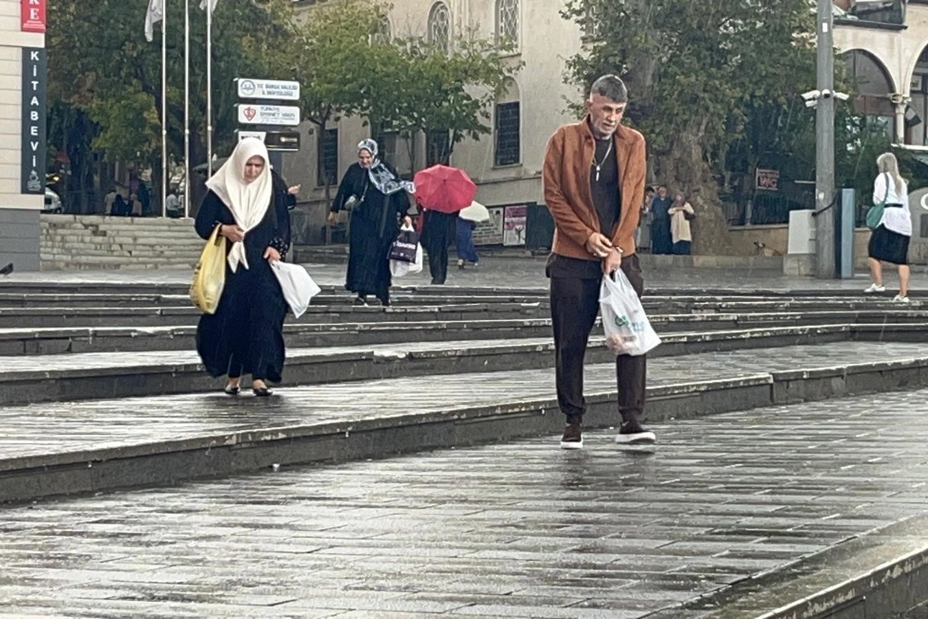 Aralıklarla şiddetini arttıran yağmura hazırlıksız yakalanan kimi vatandaşlar kapalı mekanlara sığınırken, kimi ise şemsiyenin altında yağmurun tadını çıkardı.