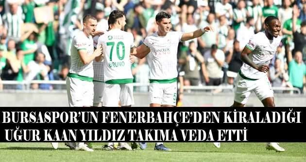 Bursaspor’un sezon başında Fenerbahçe’den kiraladığı Uğur Kaan Yıldız, yeşil-beyazlı takıma veda etti. Genç futbolcu, “Bir sezon boyunca formasını terlettiğim Bursaspor’da bugün son maçıma çıktım. Bu süreçte üzerinde emeği olan, gelişimime katkı sağlayan herkese teşekkür ederim. Bir teşekkür de ne olursa olsun desteğini esirgemeyen taraftarımıza Bursaspor daha güçlü dönecek!” dedi.