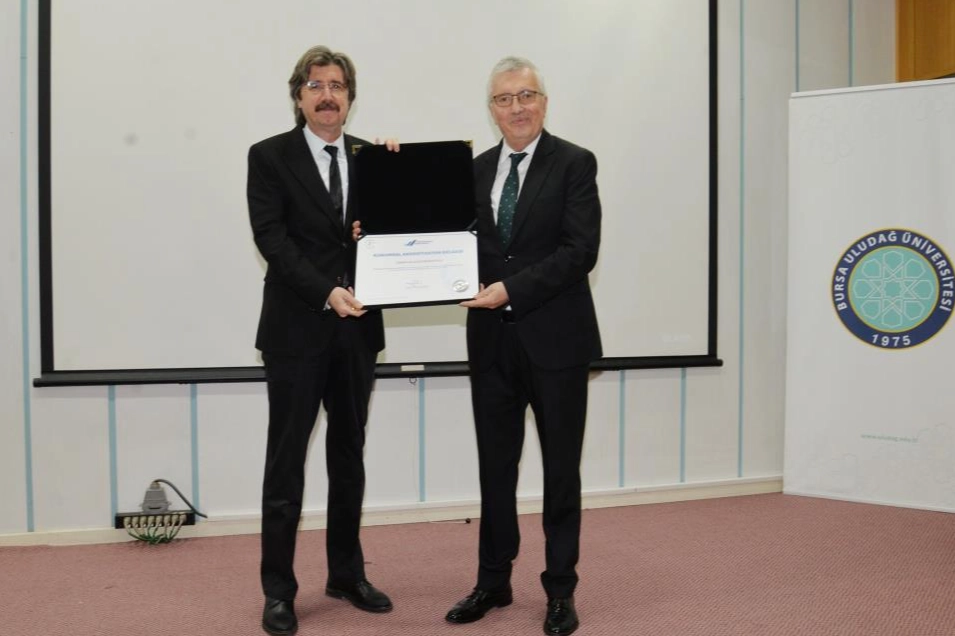 YÖKAK tarafından 2022 yılı Kurumsal Akreditasyon Programı çerçevesinde yapılan denetimler sonucunda akredite edilmeye hak kazanan BUÜ, düzenlenen törenle belgesini aldı. Törene YÖKAK Başkanı Prof. Dr. Ümit Kocabıçak, Rektör Prof. Dr. Ferudun Yılmaz, Rektör Yardımcıları ile çok sayıda akademik ve idari personel katıldı. 2027 yılına kadar tüm üniversiteler akredite edilecek Programda “Yükseköğretimde Kalite Güvence Sistemleri ve Akreditasyon” konulu kapsamlı bir sunum da yapan YÖKAK Başkanı Prof. Dr. Ümit Kocabıçak, gecikmeli de olsa alınan akreditasyon belgesini takdim etmek için üniversiteye gelmek istediğini aktardı. Kurumda yoğun bir akreditasyon süreci bulunduğunu açıklayan Prof. Dr. Ümit Kocabıçak, “Bursa Uludağ Üniversitesi de bu belgeyi almaya hak kazanan 30 üniversitemiz arasında yer aldı. İlk yıl olduğu için bir denetim yapılmayacak ancak şimdiden ikinci yıl gerçekleştirilecek denetimlere şimdiden hazırlanmanızı sizlerden rica ediyorum. Üniversitenizde yürütülen çalışmaları ve emeği görüyoruz. Bir sonraki süreçte 5 yıllık kapsamlı akreditasyon belgesi almaya hak kazanacağınıza inanıyoruz. Kalite konusu hepimiz adına büyük bir önem taşıyor. Dünyada da bu işe özel bir önem veriliyor. Bizim de amacımız tüm üniversitelerimizi 2027 yılına kadar akredite etmektir” dedi. Üniversitelerde kalite güvence kültürünün yaygınlaştırılması ve veri girişlerinin tek elden yürütülmesi için yeni çalışmalar yaptıklarını da sözlerine ekleyen YÖKAK Başkanı Prof. Dr. Ümit Kocabıçak, BUÜ yöneticilerini ve tüm çalışanlarını alınan akreditasyon belgesinden ötürü bir kez daha tebrik etti. “Elimizden gelen gayreti göstereceğiz” Rektör Prof. Dr. Ferudun Yılmaz ise belgenin kazanılma sürecinde yoğun bir çalışma temposunda olan herkese teşekkür etti. 2 yıllık bir belge aldıklarının ve bunu 5 yıllık kapsamlı bir akreditasyona dönüştürmek istediklerinin bilgisini veren Prof. Dr. Ferudun Yılmaz; “İnşallah yeni YÖKAK Başkanımızla birlikte tam akreditasyon hedefimize yönelecek ve bunun gerçekleşmesi için elimizden gelen gayreti göstereceğiz. Üniversitemizin güçlü ve köklü bir kalite geçmişi var. Aynı zamanda bir Araştırma Üniversitesiyiz. Orada çok daha yukarılara çıkabilmemiz için akreditasyon konusunda daha kalıcı sonuçlar almamız gerekiyor. İnşallah hep birlikte çalışacak ve çok daha yüksek hedeflere ulaşacağız. Bir kez daha akreditasyon sürecinde emeği bulunan herkese teşekkür ediyor, akreditasyon belgemizin üniversitemize hayırlar getirmesini diliyorum” şeklinde konuştu. Konuşmaların ardından YÖKAK Başkanı Prof. Dr. Ümit Kocabıçak, akreditasyon belgesini BUÜ Rektörü Prof. Dr. Ferudun Yılmaz’a takdim etti.