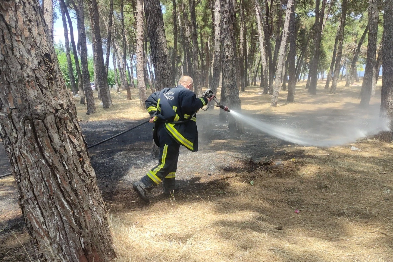 Bursa'nın Orhangazi ilçesinde İznik Gölü sahilindeki çamlık tesislerinde sigara izmaritinden çıktığı tahmin edilen yangın, ağaçlara zarar verdi. BUSKİ'ye ait arıtma tesisi personellerinin ilk müdahaleyi yaptığı yangın, itfaiye ekipleri tarafından kontrol altına alındı. Yangın, saat 13.00 sıralarında Orhangazi'de İznik Gölü sahilindeki çamlık alanda meydana geldi. Çamlık tesisleri içindeki otlardan duman çıktığını gören vatandaşlar durumu itfaiye ekiplerine bildirdi. İlk müdahaleyi BUSKİ'ye ait arıtma tesisi personeli yaparken, olay yerine gelen itfaiye ekipleri yangını yayılmadan söndürerek kontrol altına alındı. Otlardan çıkan yangının bölgeye atılan bir sigara izmaritinden çıkmış olabileceği düşünülüyor.