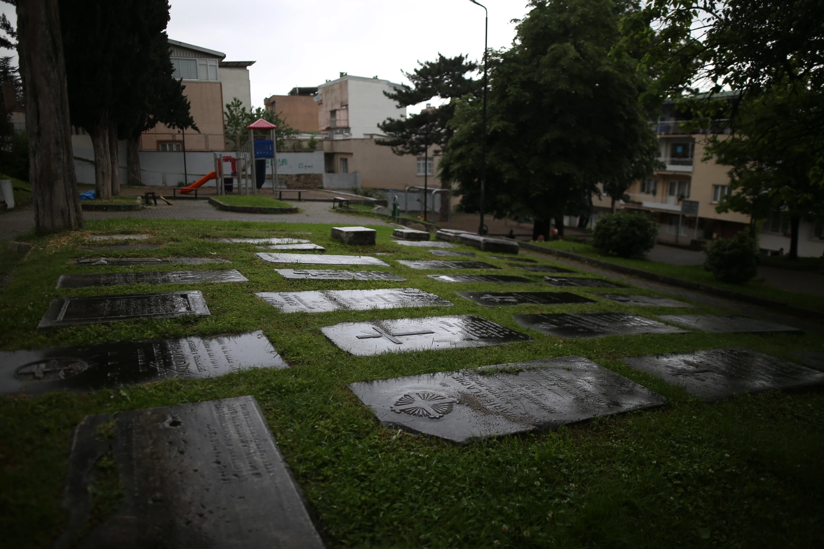 Bursa’da bir çocuk parkı içerisinde bulunan Fransız Mezarlığı, tarihi mezar taşları ile dikkat çekiyor. Pek çok gayrimüslimin yattığı bilinen mezarlıkta, en eski 1831 en yeni 1927 yılına ait haç işaretli mezar taşları bulunuyor. Bursa’nın Yıldırım ilçesi Piremir Mahallesi’nde bir çocuk parkı içerisinde bulunan Fransız Mezarlığı dikkat çekiyor. Birçoğunun üzerinde Hristiyanlığın sembolü olan haç bulunan 32 mezar taşından en eskisinin 1831, en yenisinin de 1927 yılına ait olduğu biliniyor. İsmi Fransız Mezarlığı olsa da günümüze ulaşan mezar taşlarındaki isimlerin içerisinde İtalyan, Alman, İngiliz, Ermeni ve İsviçreli olmak üzere birçok milletten insanın yattığı anlaşılıyor. 1940’lı yıllara kadar gayrimüslim mezarlığı olarak kullanılan alan, şimdilerde konut alanları ve çocuk parkı olarak kullanılıyor. Çocuk parkı içerisindeki mezar taşları kasvetli yapılarıyla dikkat çekiyor. “Burada tarihe duyulan bir saygı var” Mezar taşlarına mahalle sakinleri tarafından sahip çıkıldığını ifade eden Piremir Mahallesi Muhtarı Seyran Okumuş Pekmez, “Yaklaşık 1978’den bu yana bu mahalledeyim. Hatırladığım kadarıyla geçmiş dönemlerde de burası Fransız Mezarlığı olarak biliniyordu ve çok dağınık bir şekildeydi. Şu anda anıt mezar olarak buradaki eserler koruma altına alındı. Mezarlığın hemen yan tarafında oturma alanları ve çocuk parkı var. Çocuk cıvıltıları ile birlikte bence çok güzel bir yer olduğunu düşünüyorum. Burada tarihe duyulan bir saygı var. Buraya yurt dışından gelen insanlar oluyor, hatta kısa bir zaman önce yurt dışından buraya gelip çekim yaptılar” şeklinde konuştu.