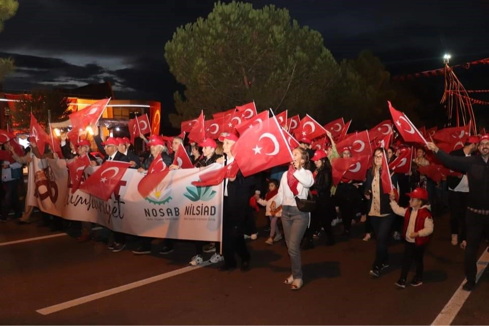 Bölge sanayicileri, çalışanlar, STK temsilcileri, meslek liseli öğrenciler ve vatandaşlardan oluşan kalabalık topluluk, ellerinde bayraklarla coşkulu bir şekilde NOSAB Atatürk Bulvarı’nda Cumhuriyet Yürüyüşü gerçekleştirdi. NOSAB ve NİLSİAD, Cumhuriyetin 100. yıl coşkusunu doyasıya yaşamak için organize ettiği program kapsamında önce bir Cumhuriyet Korteji düzenledi, ardından Denden grubu üyelerini bölge çalışanları ve vatandaşlarla buluşturdu. Cumhuriyet’in 100. yılı ve 29 Ekim Cumhuriyet Bayramı kutlama programına NOSAB Başkanı Erol Gülmez ve NİLSİAD & NOSAB Müteşebbis Heyet Başkanı Yalçın Aras ile sanayiciler, çalışanlar ve vatandaşlar katıldı. Türk Bayrakları eşliğinde NOSAB Atatürk Bulvarı’nda gerçekleştirilen Cumhuriyet Korteji’nin ardından etkinlik alanında bir konuşma yapan NOSAB Başkanı Erol Gülmez, Cumhuriyet’i meydanlarda kutlamak istediklerini ifade etti. NOSAB Başkanı Erol Gülmez, daha sonra şunları söyledi: “100 yıl önce ebedi liderimiz Mustafa Kemal Atatürk ve silah arkadaşları Cumhuriyeti kurdu. Bizler onların anısını yaşatmak ve daha fazla geleceğe taşımak için sizlerle beraberiz. Cumhuriyet özgürlüktür arkadaşlar, Cumhuriyet bireylerin kendileri temsil etmesidir. Cumhuriyet eşitliktir. İnsanlara yaşadığı ülkede kendini eşit hissettirme meselesidir. Biz de bu değerleri yaşatmaya çalışan bir kurum olarak; daha müreffeh bir toplum oluşturmak için çaba gösteriyoruz.” Cumhuriyetin 100. yılının STK’lar ve OSB’ler tarafından genelde salonlarda kutlandığını belirten Gülmez, “100. yıl coşkusunu salona sığdıramayacağımızı düşündük. Sanayicimizle, çalışanımızla, ailelerimizle bir arada olmak için bir açık hava konseri organize ettik. Katılımınızdan dolayı hepinize çok teşekkür ediyorum. Yaşasın Cumhuriyet diyorum, Yaşasın Mustafa Kemal Atatürk diyorum.” NİLSİAD & NOSAB Müteşebbis Heyet Başkanı Yalçın Aras ise Cumhuriyet’in 100. yılında Atatürk ilke ve devrimlerini geleceğe taşımak için gayret ettiklerini ifade etti. Konuşması sırasında Cumhuriyet’i kuran iradenin aynı güç ve azimle bağımsız Türkiye’yi inşa ettiğini vurgulayan Aras, erken Cumhuriyet döneminde açılan fabrikaları hatırlattı. Aras, 100. yıla özel yazdığı şiiri okudu ve şiirinin son dizelerinde “Biz Cumhuriyet çocuklarıyız. İlelebet Cumhuriyet demekten asla vazgeçmeyeceğiz” dedi. Aras, sözlerini katılan herkese teşekkür ederek tamamladı. Cumhuriyet Bayramı kutlama etkinliği katılımcıların Denden grubu şarkıları eşliğinde eğlenmesiyle devam etti. Konser sırasında yağan yağmura aldırış etmeyen kalabalık, NOSAB’ın dağıttığı yağmurlukları giyerek eğlenmeye devam etti.