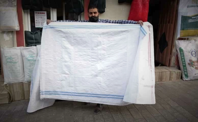 Tahıl Pazarında ikinci el çuval alım satımı yapan esnaf, kullanılmış un, buğday, bakliyat, şeker ve yem çuvallarını çöpe gitmekten kurtarıp ekonomiye kazandırıyor. Yem, un, buğday, bakliyat ve şeker çuvallarını kullananlar bunları çöpe atmak yerine ikinci el alım satımını yapan Bahadır Oğuz'u arayarak ellerinde ikinci el çuval olduğunu söylüyor. Oğuz da bu çuvalları gidip alarak Tahıl Hanındaki dükkânında satıyor. İkinci el çuvallara eşya ve moloz doldurmak isteyenler büyük rağbet gösteriyor. İkinci el çuvallar büyüklüğüne göre 1 ila 3 lira arasında değişen fiyatlarla satılıyor. Çuvalcı günde 5 bin adet çuval satmayı başarıyor. İkinci el çuvalların yanında her ebat sıfır çuval satışı da yapılıyor. Bu mesleğin babasından kaldığını ifade eden Bahadır Oğuz, "Rahmetli babam bu dükkânı 1964 yılında açmış. Biz de babamızın mesleğini devam ettiriyoruz. Biz burada ikinci el ve sıfır çuval satışı yapıyoruz. İkinci el çöpe gidecek çuvalları gidip alarak bunları çöpe gitmekten kurtarıp ekonomiye kazandırıyoruz. Kullanılan un, buğday, bakliyat, şeker ve yem çuvallarını alıp onları çöpe gitmekten kurtarıp uygun fiyata ihtiyacı olanlara satıyoruz. İkinci el çuvala talep oldukça fazla. Günde 5 bin tane çuval satıyoruz. İkinci el çuvalları ebadına göre 1 ila 3 lira arasında değişen fiyatlarla satıyoruz. İkinci el çuvalları genellikle moloz doldurmak için kullanıyorlar. Talaş koyuyorlar, ev eşyası taşıyacaklar tercih ediyor. Bir de demir aksamları bu çuvallara koyuyorlar. Sıfır çuval da mevcut. Sıfır çuvalları ise 2 ila 20 lira arasında değişen fiyatlarla satıyoruz" dedi.