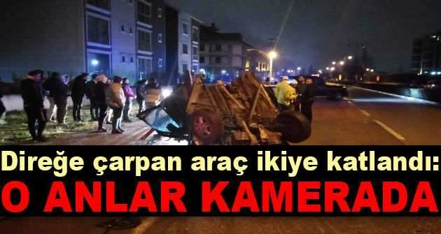 Bursa'nın İnegöl ilçesi Ahmet Türkel Çevreyolu üzerinde meydana gelen kazada sürücüsünün kontrolünden çıkan cip, aydınlatma direğine çarparak ikiye katlandı. Saniye saniye güvenlik kamerasınca kaydedilen kaza sırasında aracın camından yola fırlayan sürücü Berk Şafak İzer ağır yaralandı.