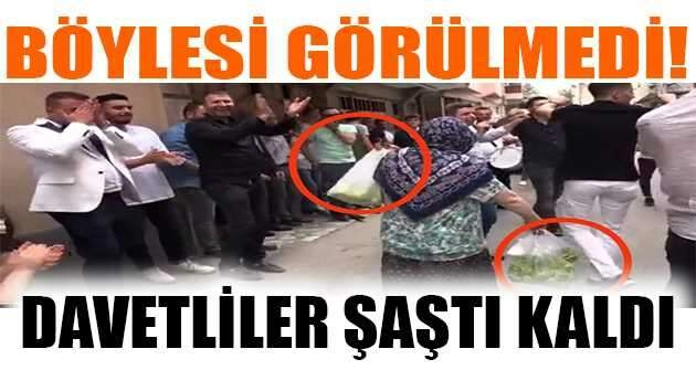 Bursa'da pazardan gelen yaşlı kadın, evinin sokağındaki gelin almaya dahil olunca, ortaya renkli görüntüler çıktı.