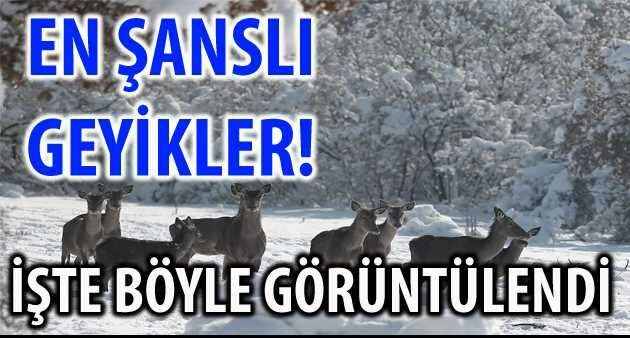 Veteriner Fakültesi uzmanlarının bakımlarını yaptığı geyikler arasındaki 3 yavru geyik ise karla ilk kez tanışmanın sevincini yaşadı. 72 hektarlık alanda doğal olarak yaşamlarını sürdüren geyikler karla kaplı ormanda drone ile havadan görüntülendi. Bursa Doğa Koruma Milli Parklar 2. Bölge Müdürlüğü Kızılgeyik yerleştirme sahasındaki geyikler özel olarak besleniyor. Kar yağışı nedeniyle yem bulmakta zorlanan geyiklere her gün düzenli olarak kuru yonca besi yemi ve benzeri gıda takviyeleri yapılıyor. Bursa Doğa Koruma Milli Parklar 2. Bölge Müdürlüğü’nün Bursa Uludağ Üniversitesi yerleşkesinde bulunan 72 hektarlık kızıl geyik yerleştirme sahasında 20 erişkin dişi, 19 erişkin erkek ve 3 adet yavru olmak üzere 42 geyik bulunuyor. Bursa’da etkili olan kar yağışı sebebiyle yem bulmakta zorluk çeken geyikler özel olarak besleniyor. Geyiklere kuru yonca, besi yemi ve benzeri gıdalar her gün düzenli olarak veriliyor. Bursa Doğa Koruma Milli Parklar 2. Bölge Müdürü Adil Şencan, “Bölge müdürlüğümüz ile Uludağ Üniversitesi arasında 2004 yılında imzalanan protokol ile üniversitemiz yerleşkesinde 71 hektarlık bir alan içerisinde 2021 envanter sonucuna göre 20 erişkin dişi, 19 erişkin erkek ve 3 adet yavru olmak üzere 42 geyik bulunuyor. Doğadaki yaralı geyiklerin tedavi edilmesi ve rehabilitasyon yapılması ve tekrar doğaya salınması amacıyla söz konusu alan oluşturuldu. 40’tan fazla geyik de rehabilite edilerek doğaya salındı. Burada yaptığımız çalışmada kış şartlarına rahat geçirmeleri ve doğadaki besin sıkıntısı çekmelerini en aza indirmeye çalışıyoruz. 2020 - 2021 sezonunda şu an kadar 8 tonun üzerinde yem verildi” dedi. Kütahya ilinden başlayıp İnegöl’e uzanan orman yangınındaki doğal yaşamı tekrar kazanmak için geyiklerin oraya salımının yapıldığını dile getiren Şencan, “Bir kısmı da yurdumuzda doğal felaket yaşanan yerlerine popülasyonu arttırmak için buralara gönderildi” ifadelerini kullandı.