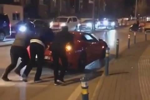 Merkez Nilüfer ilçesinde piyasada değeri yaklaşık 20 milyon TL olan Ferrari, henüz öğrenilemeyen bir sebepten dolayı yolda kaldı. Sürücü çevredekilerden yardım isterken, aracı iterek yol kenarına çektiler. Çevredeki vatandaşlar ise olan biteni hayretle izledi.
